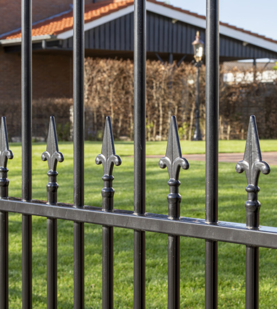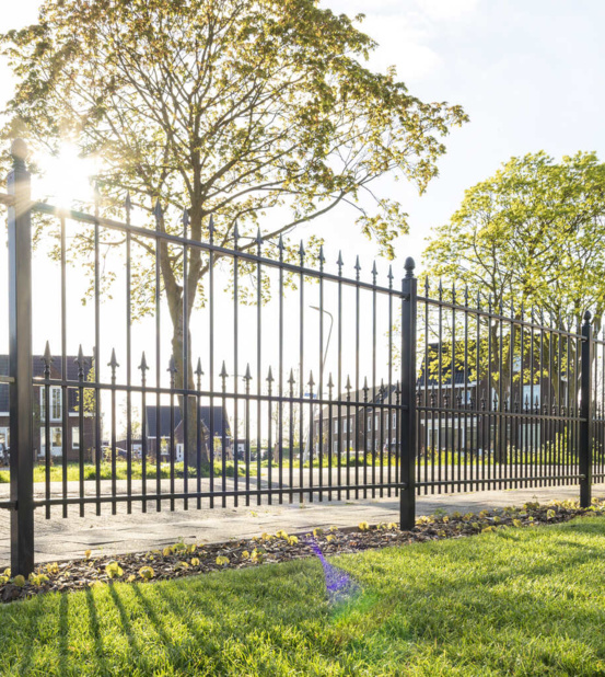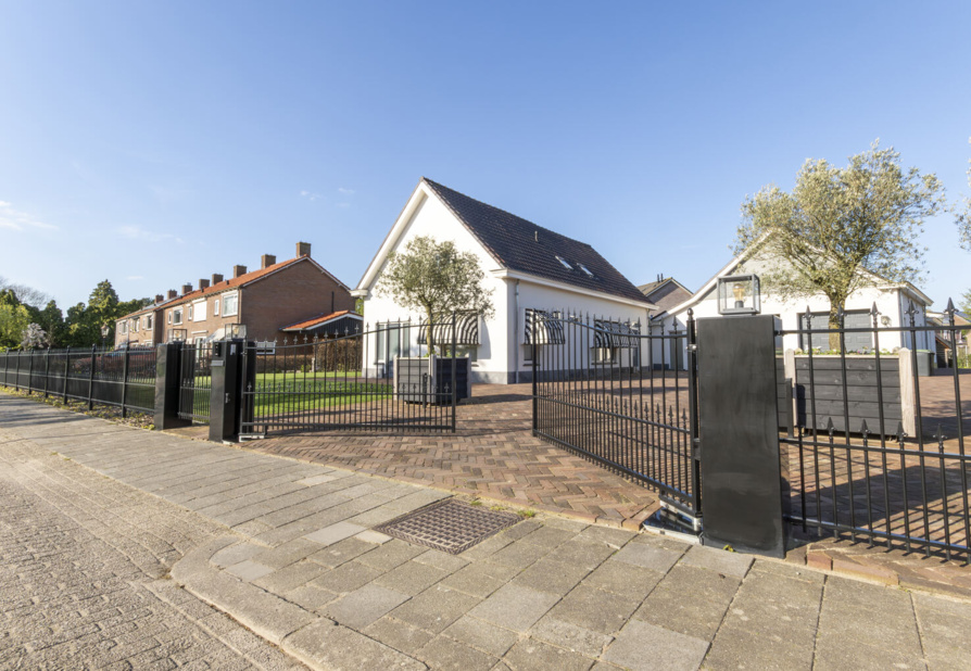 Een perceel in stijl afscheiden, dat is hier goed gelukt. Bij deze woning in Well is model Mexico toegepast, als draai- en looppoort en bijbehorend sierhekwerk. De XXL-palen geeft de poort een extra robuuste uitstraling.