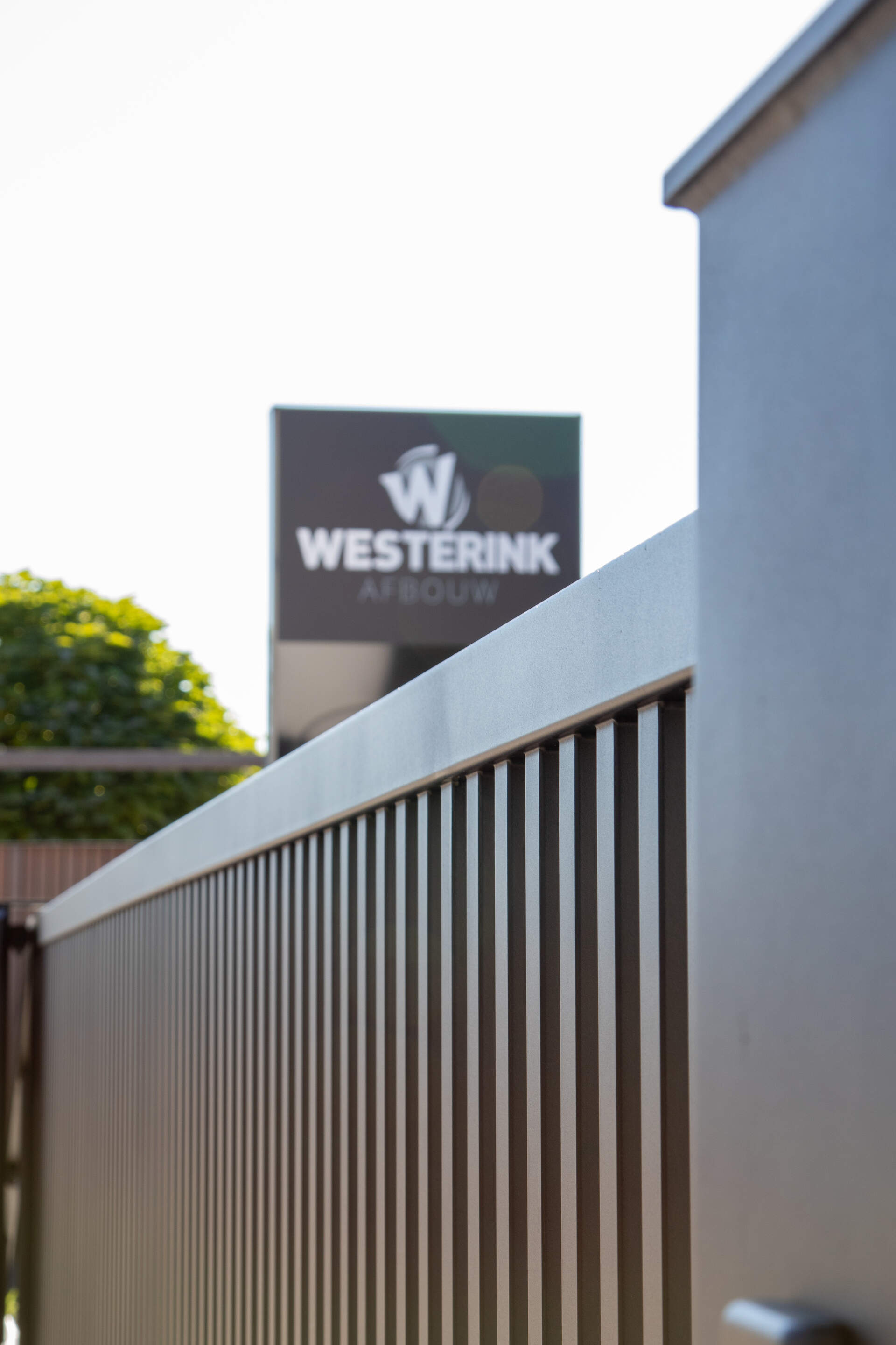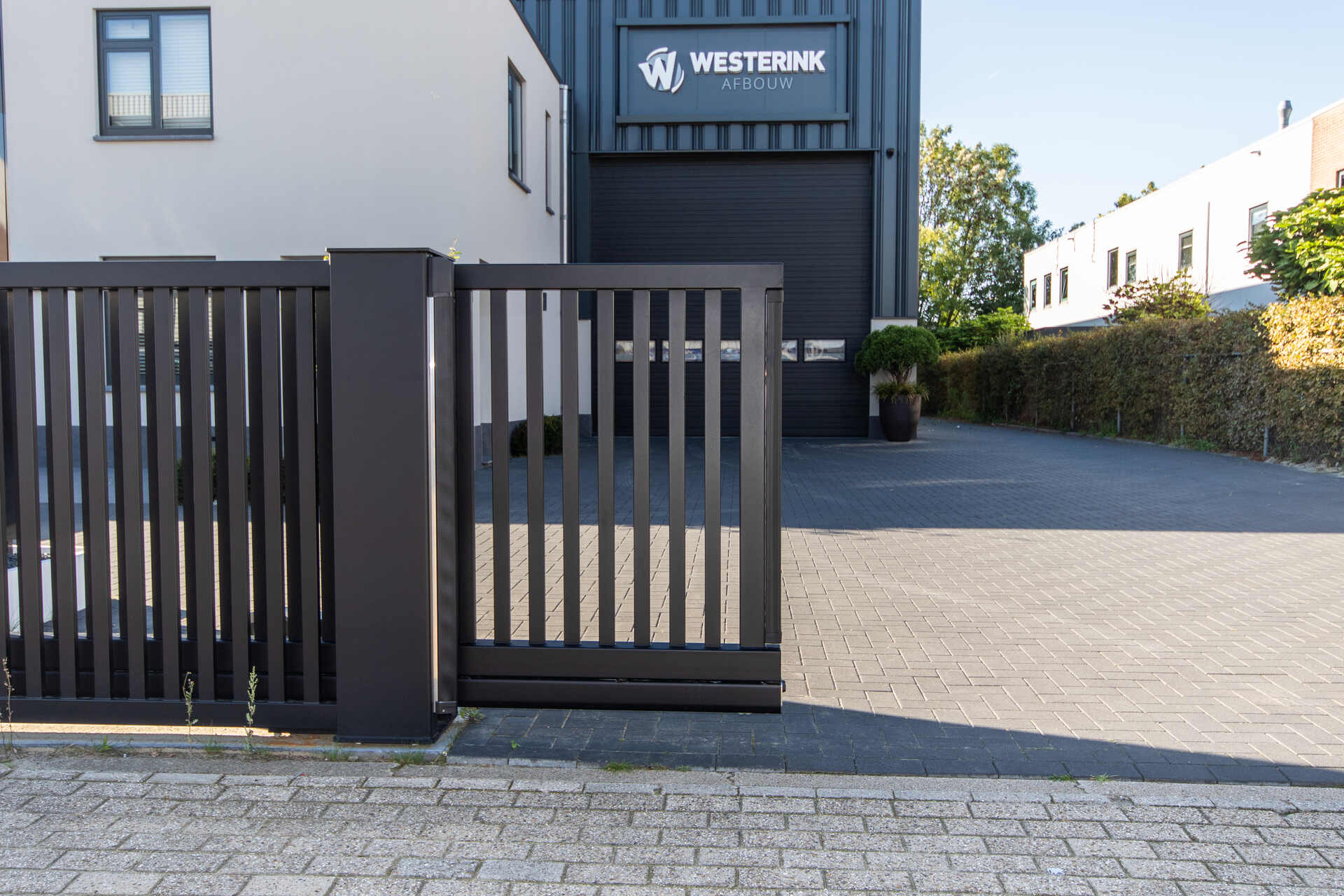 Bij Westerink Afbouw in Ede hebben we deze strakke schuifpoort met bijbehorend hekwerk geleverd. De robuuste poort zorgt voor een effectieve maar stijlvolle afsluiting van het bedrijfsterrein.