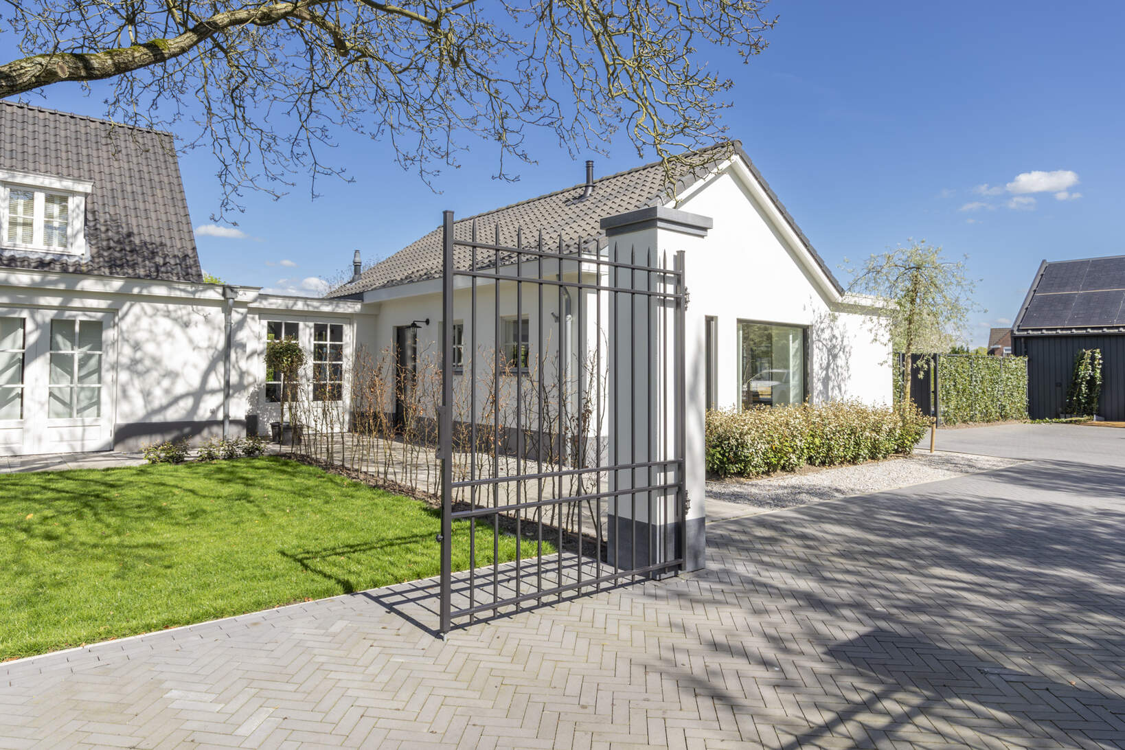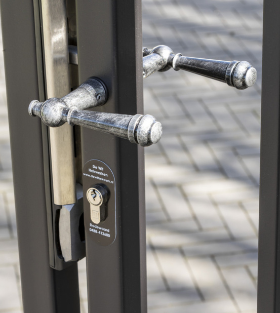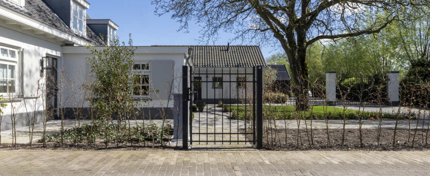 Statig en stijlvol. Zo zou je deze prachtige poort kunnen omschrijven. Wij hebben deze handmatig bedienbare draaipoort geplaatst op een mooie locatie in Geldermalsen. De poortvleugels zijn gemonteerd tussen 2 robuuste poeren, die zijn uitgevoerd in de stijl van de woning. Op hetzelfde perceel is een looppoort geplaatst, in dezelfde stijl als de dubbele draaipoort.
