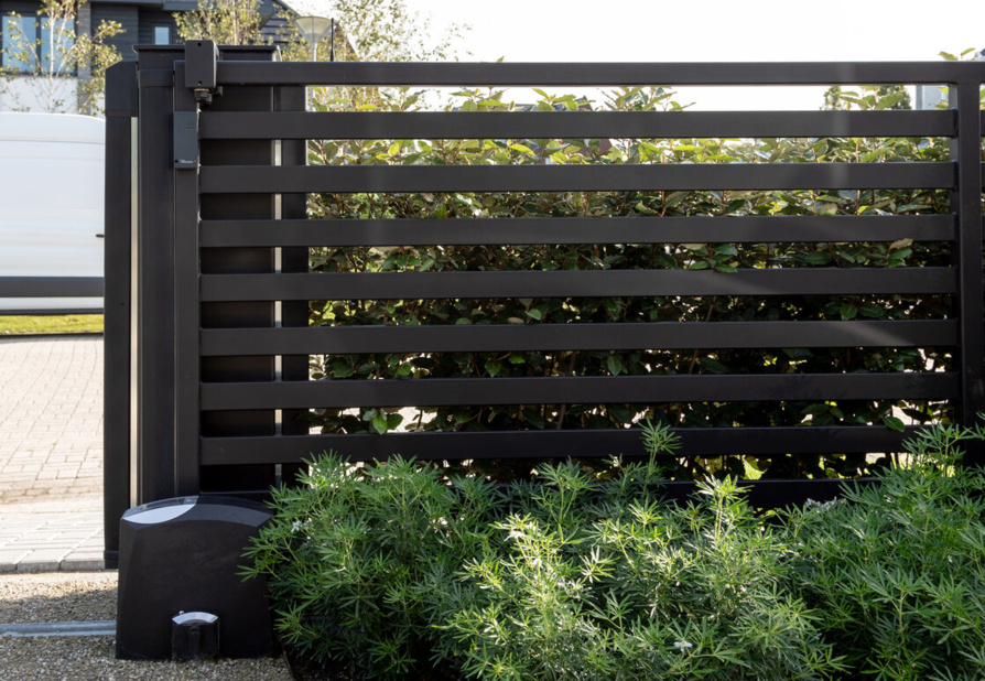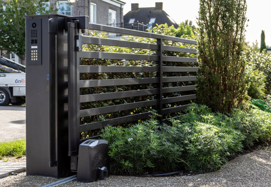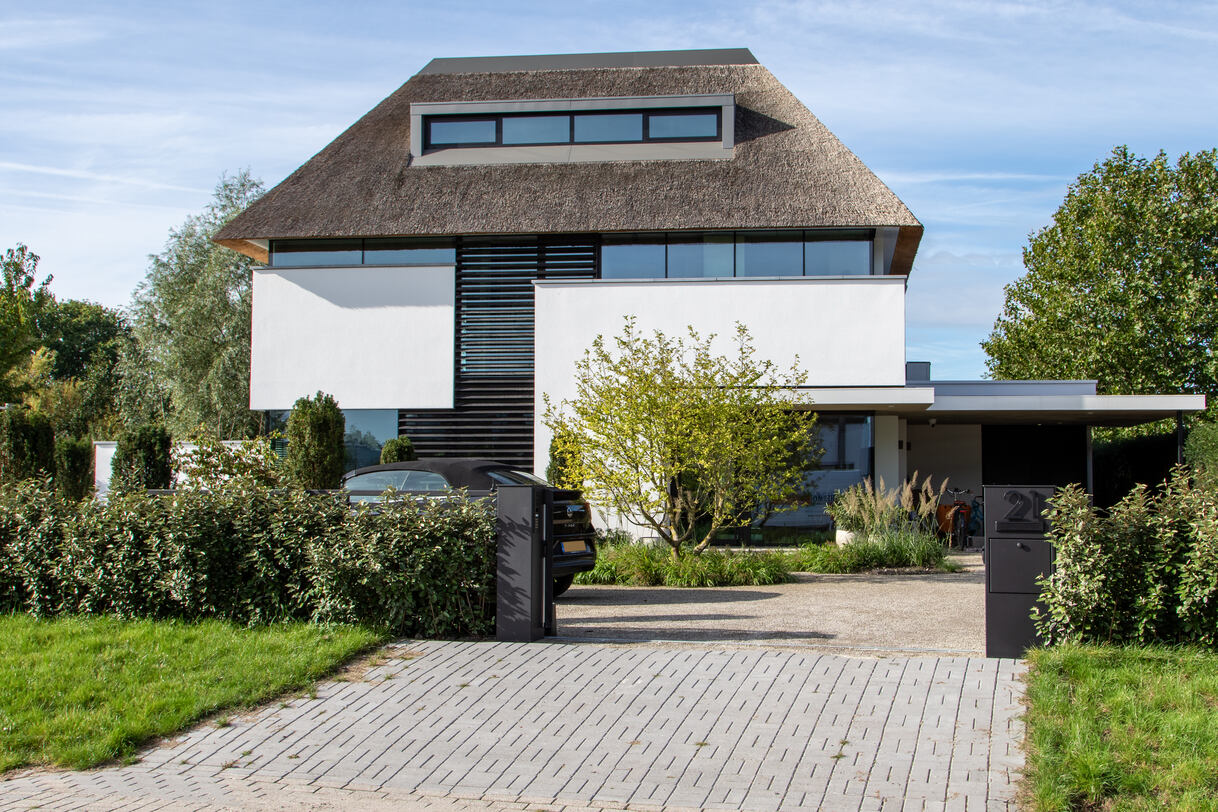 In Rotterdam staat het strakke poortmodel Londen perfect op z'n plek. Dankzij de moderne look past de poort uitstekend bij de royale villa. De XXL poortpalen zijn uitgevoerd met (pakket)brievenbus en exclusieve huisnummers.