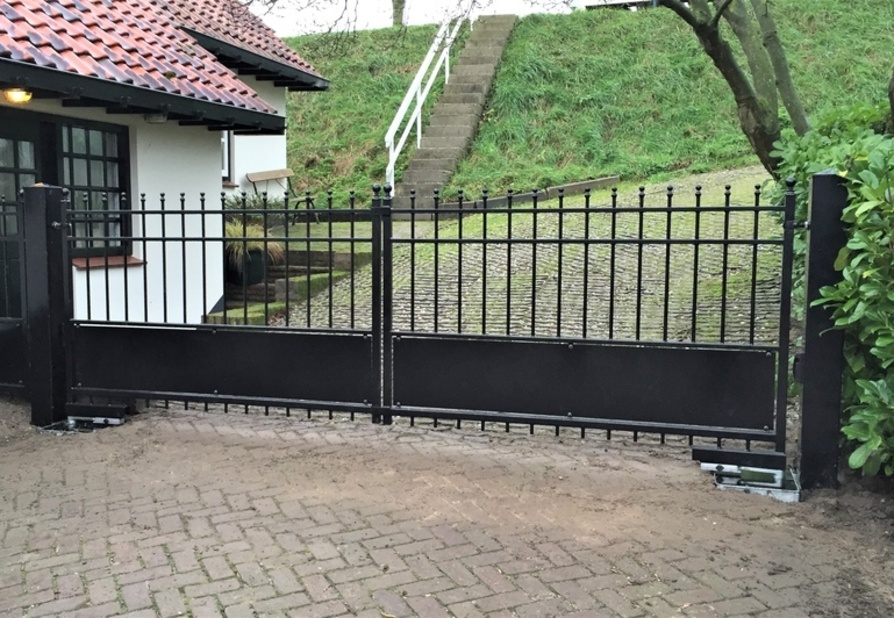 De poort wordt gemonteerd tussen robuuste, dikwandige palen. De palen worden ter plaatse in een betonfundatie gestort. Het is ook mogelijk om de poort tussen poeren te monteren.